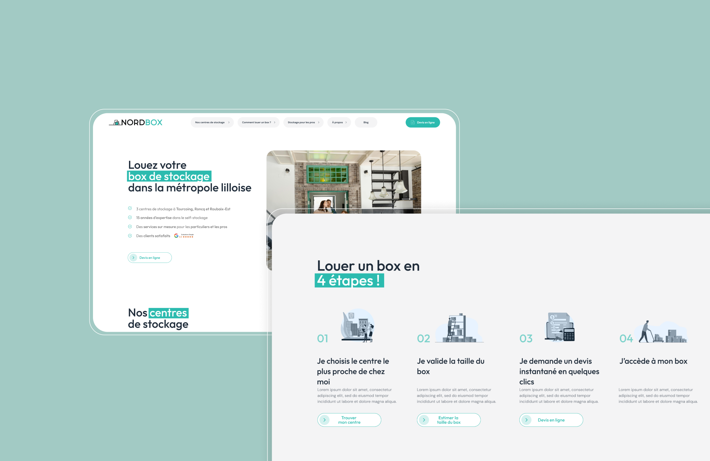 Le projet Nordbox a été une transformation complète, alliant une refonte visuelle à une innovation technologique majeure. Notre mission a été de moderniser la présence en ligne de Nordbox et de créer une expérience client plus fluide et intuitive, tout en connectant le site à une application de gestion interne. Nous avons développé une web-app sur mesure, directement liée au système de gestion de box. Cette intégration permet aux clients d'effectuer une demande de devis en ligne, simplifiant ainsi le processus de tarification et d'information.