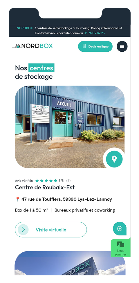 Nordbox est une entreprise spécialisée dans le self-stockage, avec 15 ans d'expérience dans ce domaine. Elle dispose de trois centres de stockage situés à Tourcoing, Roncq et Roubaix-Est.