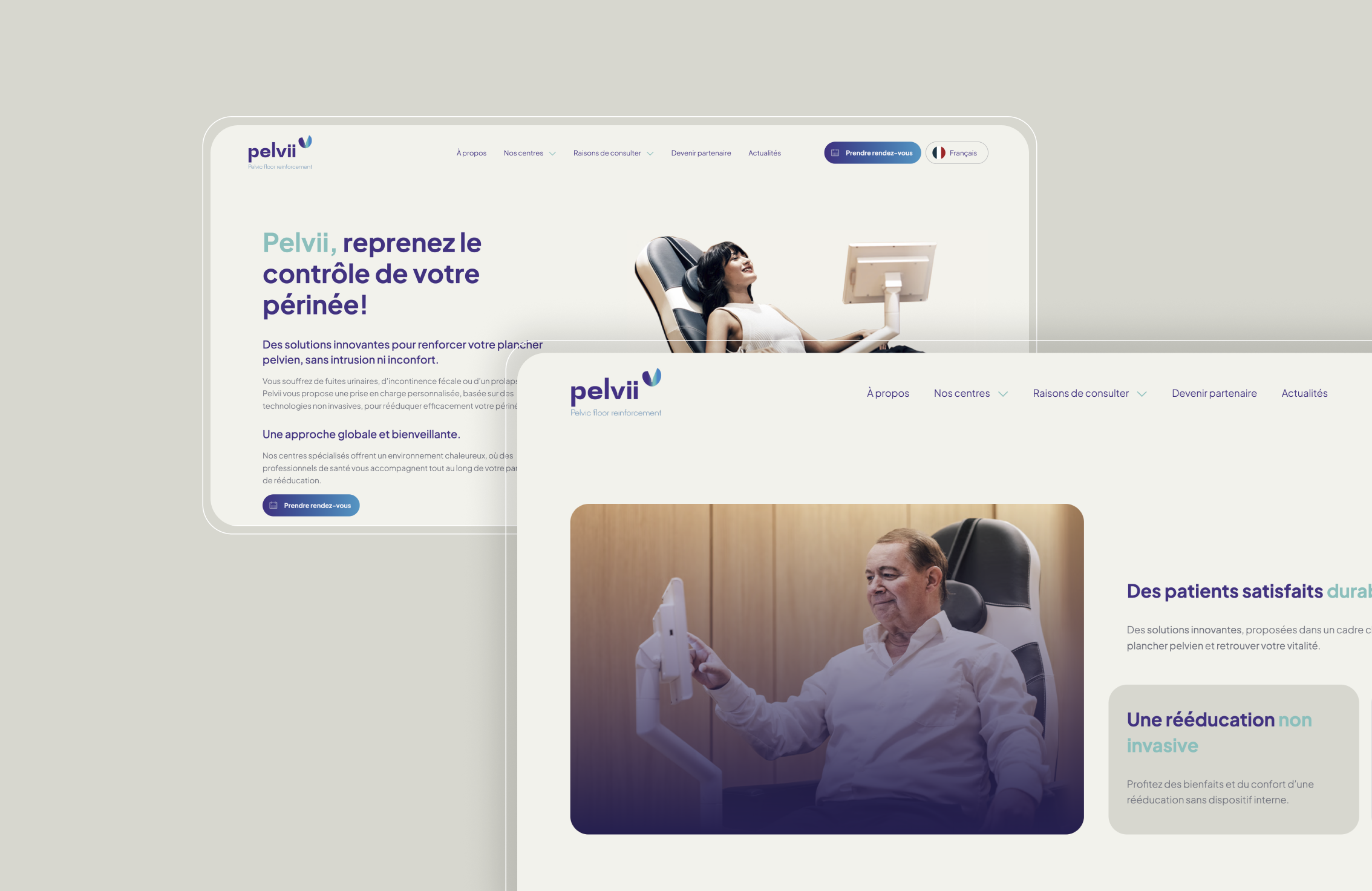 Grâce à une communication cohérente et ciblée sur divers supports — de la vitrophanie aux cartes de visite, en passant par le site internet et les campagnes de visibilité sur Google et les réseaux sociaux — nous avons positionné Pelvii comme un centre de référence innovant et sans tabou, révolutionnant l'approche de la rééducation du périnée.